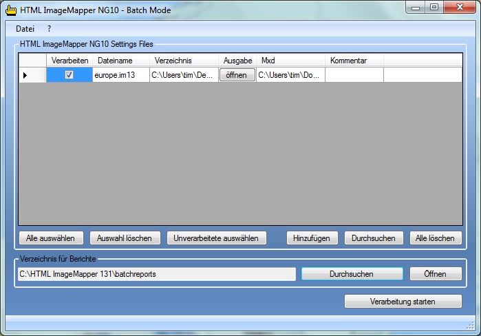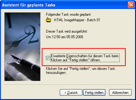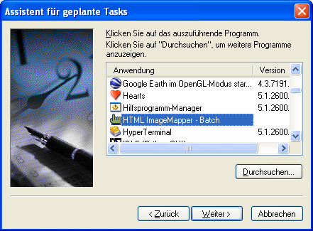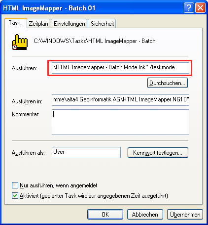 Hierzu wird zu einem frei wählbaren Zeitpunkt der HTML ImageMapper 13.1 als geplanter Task im Batch-Modus gestartet.