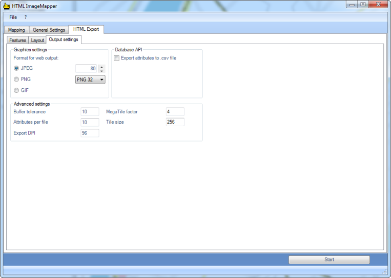 In this tab you can select the settings for the output files like the output directory and the graphics format.