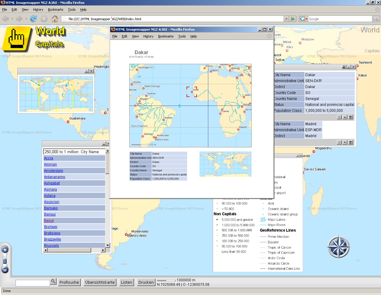 The outline map serves in addition as a navigational tool. Click into the outline map to move the map section. The big map image then “flies” to the new position.
