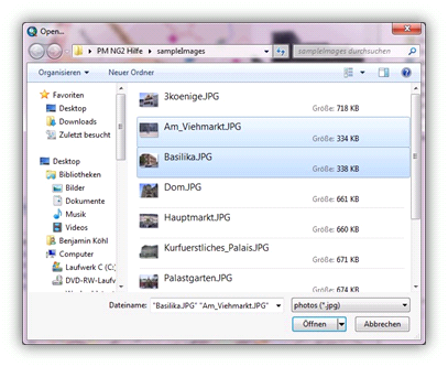 PhotoMapper Desktop 10.3 window. Now select the directory where your pictures were saved. Now you can open an individual picture – or several, if you have selected more than one with the “Ctrl” button pressed.