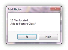 PhotoMapper Desktop 10.3 searches the selected folders for photos in the .jpg format. In the query that opens now you can decide whether you want to add the photos which were found to the Shapefile or discard the search.